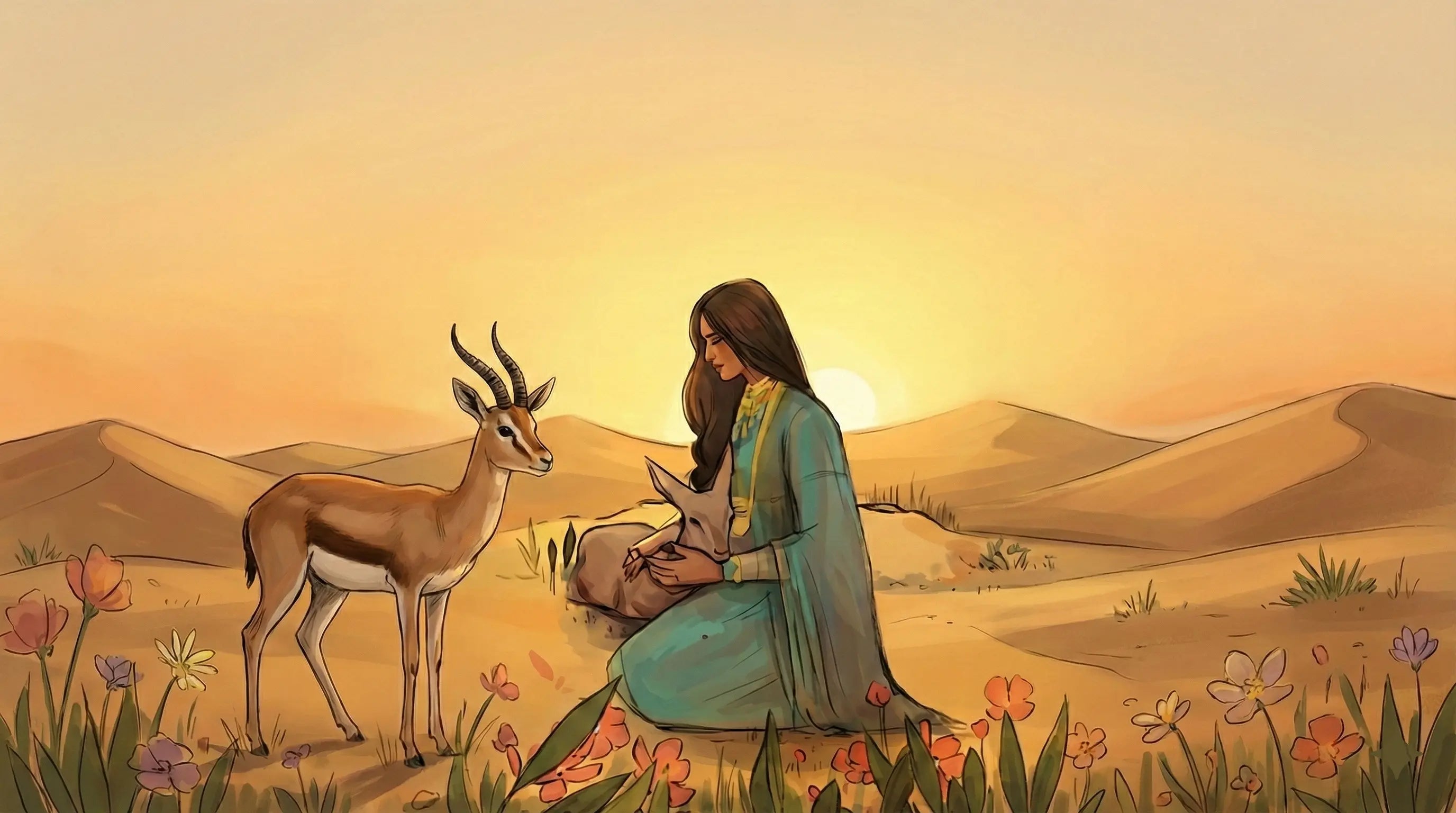 مصممة جرافيك إماراتية. تصميم مستوحى من بيت شعبي للشيخ زايد رحمه الله يجسد جمال الغزال السواعي ورمزيته في الموروث الإماراتي، حيث تلتقي الأصالة مع الحسن المعاصر لتعكس روح الانتماء والهوية.