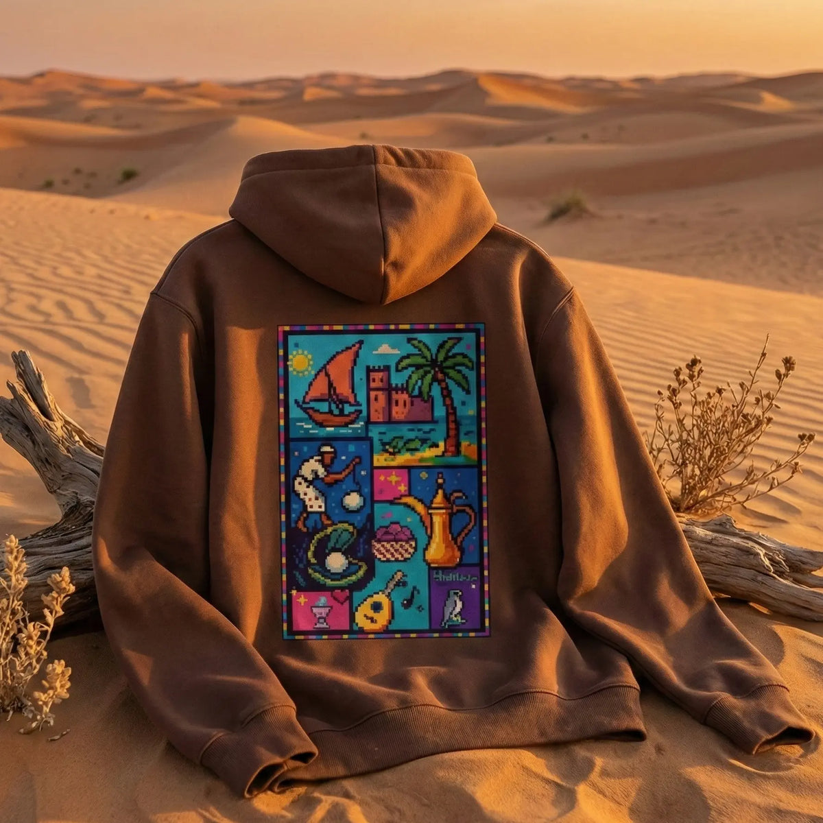 مصممة جرافيك إماراتية. من روح الإمارات وبأسلوب الـ Pixel Art العصري يعكس التصميم الهوية الإماراتية من خلال رؤية بصرية حديثة تجمع بين الأصالة والمعاصرة لتقديم قطعة تعبر عن الانتماء بذوق عصري.