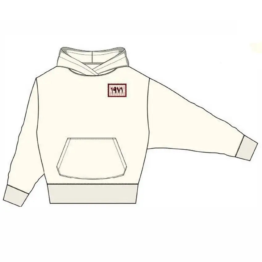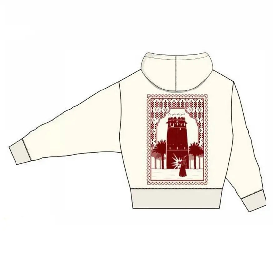 استمتع بدفء الماضي وأناقة الحاضر مع هذا الهودي المصمم خصيصاً ليحكي قصة الوطن. يأتي الهودي بلون "كريمي" (Off-white) هادئ، ليكون لوحة فنية تبرز الهوية الإماراتية. من الأمام: يتزين الصدر بختم مميز يحمل الرقم "١٩٧١"، تاريخ اتحاد الإمارات، محاطاً بنقوش مستوحاة من السدو التقليدي، ليبقى هذا التاريخ محفوراً قريباً من القلب. من الخلف: تحفة فنية كبيرة تصور أحد الحصون التاريخية الشامخة وسط واحة من النخيل، في مشهد يجسد الصمود والأصالة، مرسومة باللون العنابي التراثي الذي يبرز جمال التصميم على الخلفية الفاتحة. صُمم بقصة مريحة (Oversized) وخامة عالية الجودة لتمنحك الراحة والدفء، مما يجعله خياراً مثالياً للمناسبات الوطنية والإطلالات اليومية المميزة.