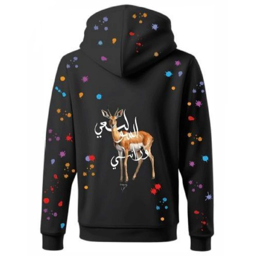 الشيخ زايد رحمه الله يوم قال "السولعي وزاني" كان يشبّه الجمال اللي يشوفه بـ غزال السولعي، والغزال السولعي معروف بجماله، ورشاقته، ونظرة عيونه، ووقفته اللي فيها هيبة ونعومة بنفس الوقت. وتصميم الغزال السولعي ك عنصر اساسي يعكس روح البيت ويترجم الجمال. وكلمة "وزاني" يعني يزيدني زين أو يرفع قدري. يعني كأنه يقول: الجمال اللي أشوفه مثل جمال السولعي، ووجوده يزيدني ويزيدني فخر.